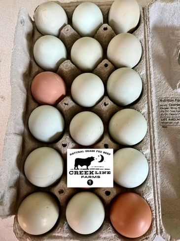Local Farm raised eggs rich with OMEGA -3s, and a variety of organic fruits and vegetables. Since we have several breeds of lovely hens, they lay multitude of colors.